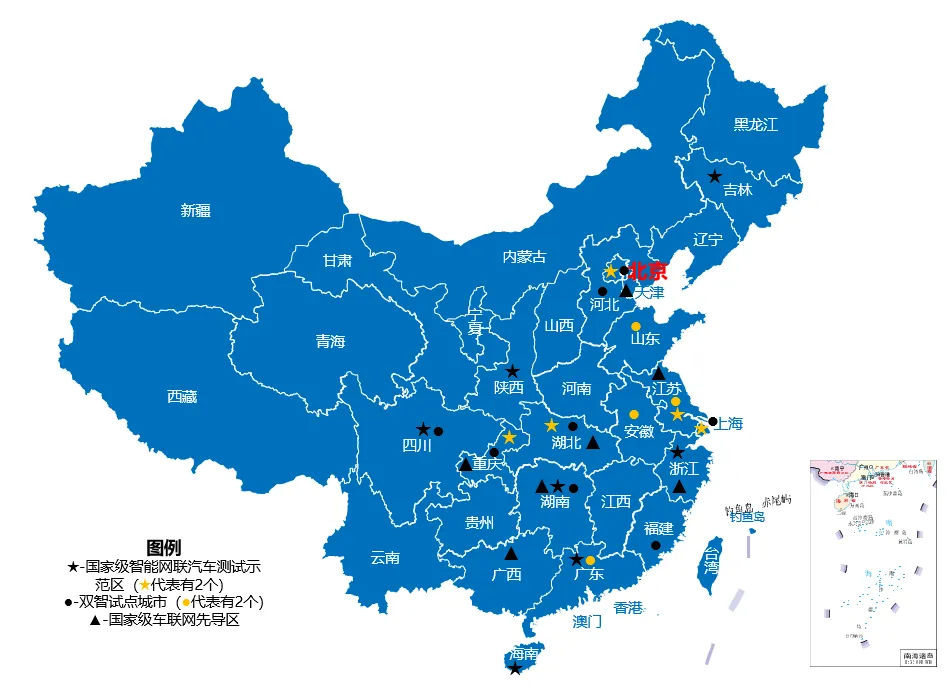 2016年11月,工業(yè)和信息化部開始推動構建“基于寬帶移動互聯(lián)網(wǎng)的智能汽車與智慧交通應用示范”,北京、上海、浙江、重慶、武漢、吉林獲批建設首批六個示范區(qū)。截至2024年5月,全國已有17個國家級智能網(wǎng)聯(lián)測試示范區(qū)、16個“雙智”試點城市,7個車聯(lián)網(wǎng)先導區(qū);全國共開放自動駕駛示范道路3.2萬多公里,測試里程超1.2億公里。