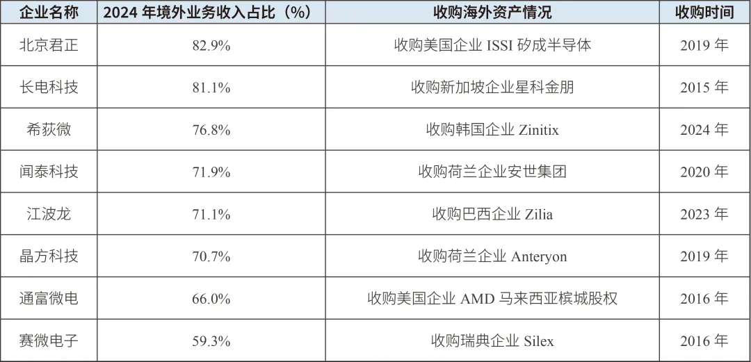 表1:部分集成電路上市企業通過收購實現“出海”
