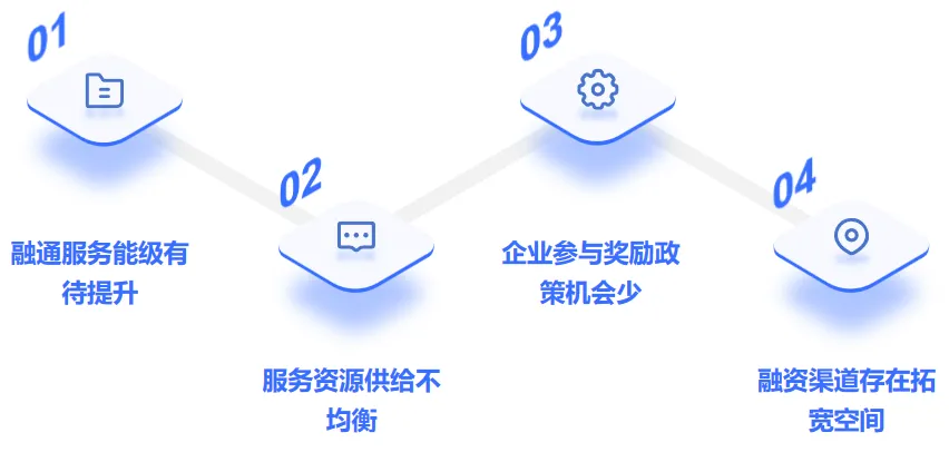 產(chǎn)業(yè)園區(qū)服務功能局限,過度依賴傳統(tǒng)銀企對接模式,股權(quán)融資、政策性融資工具(如專精特新專項貸)等多元渠道整合能力不足,融資路徑狹窄;信息匹配低效,未建立專精特新企業(yè)技術(shù)價值評估與金融機構(gòu)風險偏好動態(tài)匹配的數(shù)字化平臺,導致輕資產(chǎn)、高成長型企業(yè)難以突破銀企之間“技術(shù)看不懂、風險算不清”的信息鴻溝。