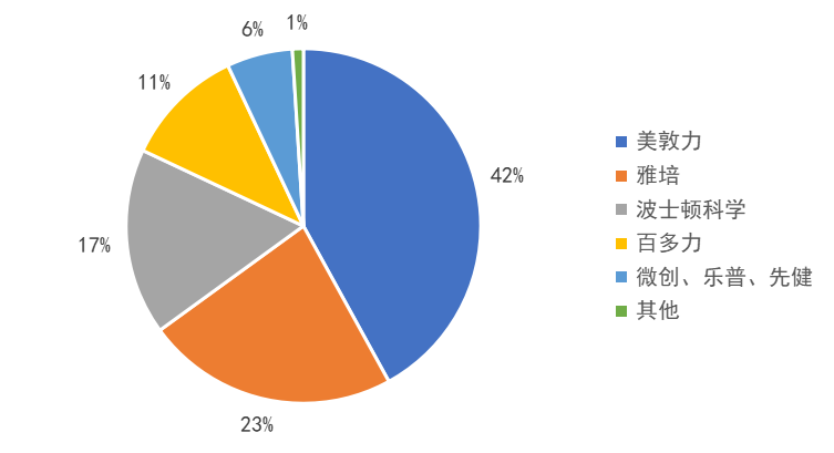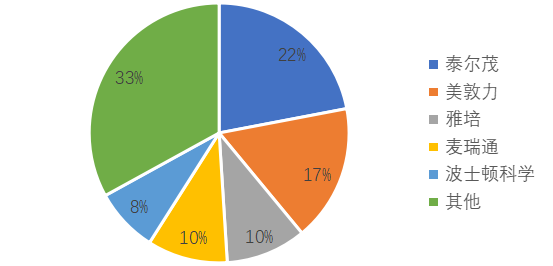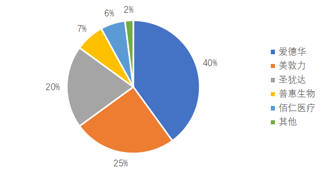 圖7 2021年中國心臟起搏器市場份額情況