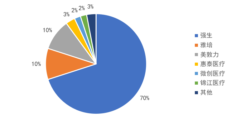 腦血管介入器械(又稱神經(jīng)介入器械)是指治療中樞神經(jīng)系統(tǒng)血管疾病的微創(chuàng)醫(yī)療器械。美敦力作為全球腦血管介入器械行業(yè)的引領者,進入中國市場20余年,以其全球領先的高技術(shù)產(chǎn)品占據(jù)國內(nèi)60%市場份額。而國內(nèi)品牌如微創(chuàng)神通、心瑋醫(yī)療、沛嘉醫(yī)療、歸創(chuàng)通橋等多以生產(chǎn)微導管類、微導絲類等通路類產(chǎn)品為主。