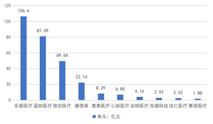 圖8 2021年國產(chǎn)心血管介入器械公司營業(yè)收入排名