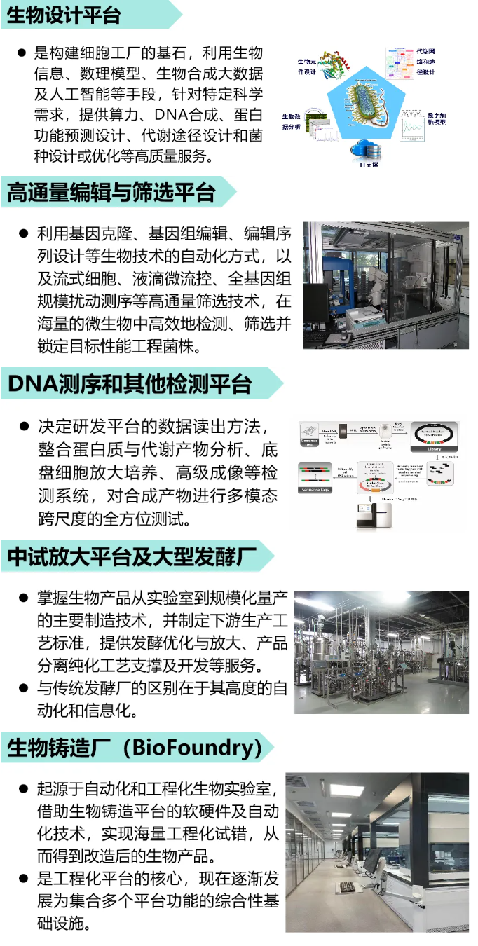 平臺層主要是指通過打造將軟件工程、生化工具、基因工程、自動化平臺、機(jī)器學(xué)習(xí)與數(shù)據(jù)科學(xué)、代碼庫等理論與技術(shù)在內(nèi)的集成化平臺,依賴于DBTL循環(huán)迭代,實(shí)現(xiàn)生物產(chǎn)品從設(shè)計(jì)到開發(fā)以及最終產(chǎn)品落地的過程。